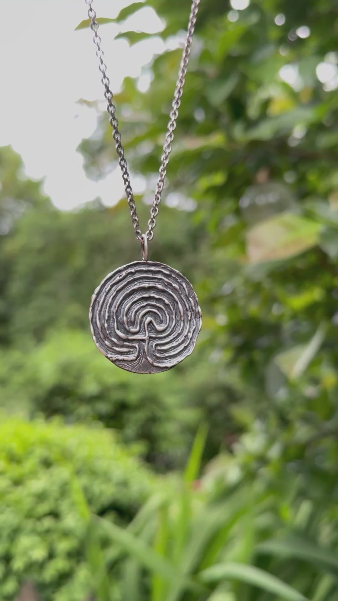 A talisman of personal journey and inner clarity. This pendant draws inspiration from the ancient Celtic labyrinth, a sacred symbol representing the soul's path through transformation and the cycles of life. Crafted in solid sterling silver, it serves as a reminder that every step taken is part of a purposeful journey toward self-discovery and enlightenment.